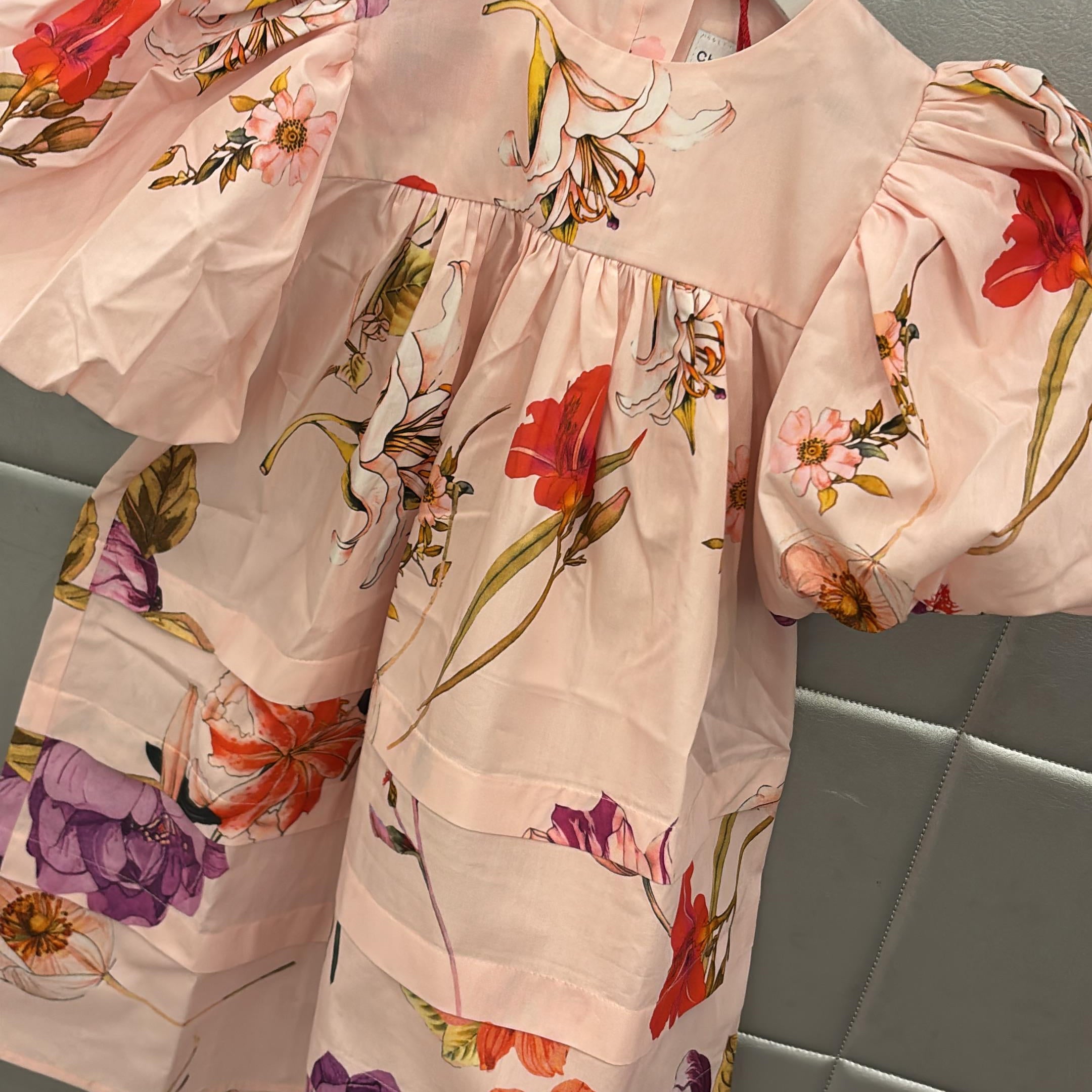 Christina Rohde Light Pink Floral Puff Sleeve Dress