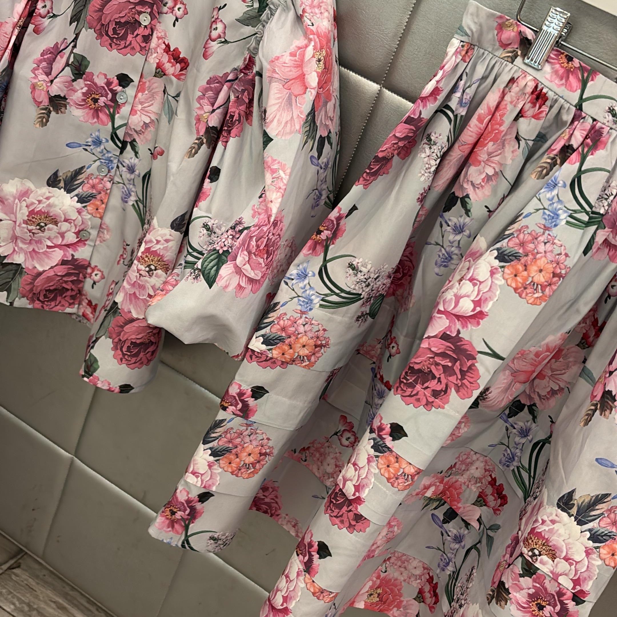 Christina Rohde Light Grey Floral Puff Sleeve Dress