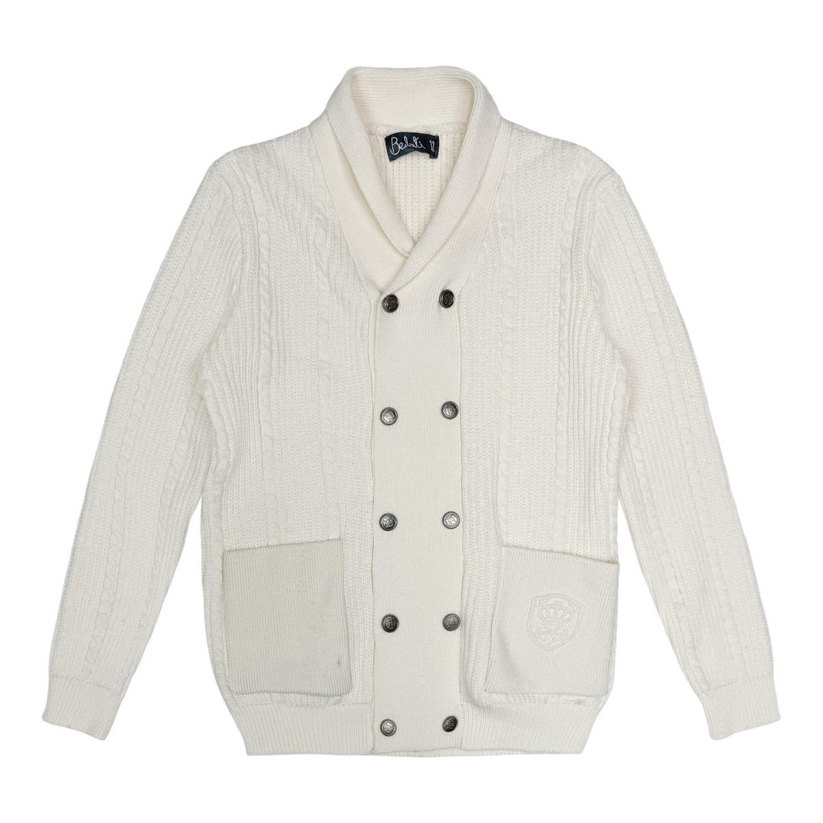 Belati Dusty Blue Emblem Cable Knit Mockneck