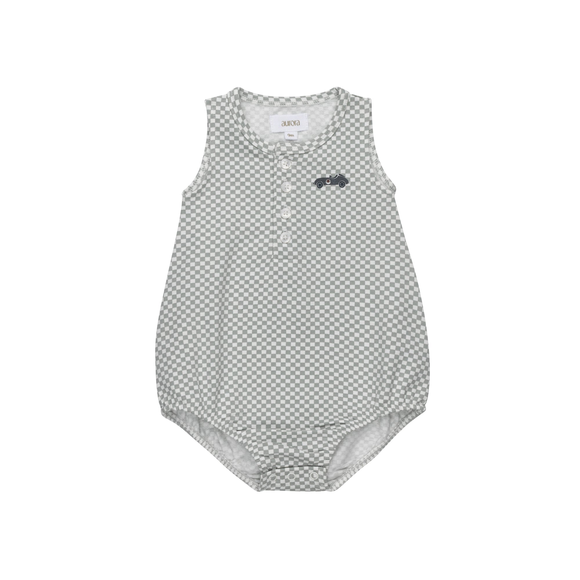 Aurora Blue Checked Race Car Romper