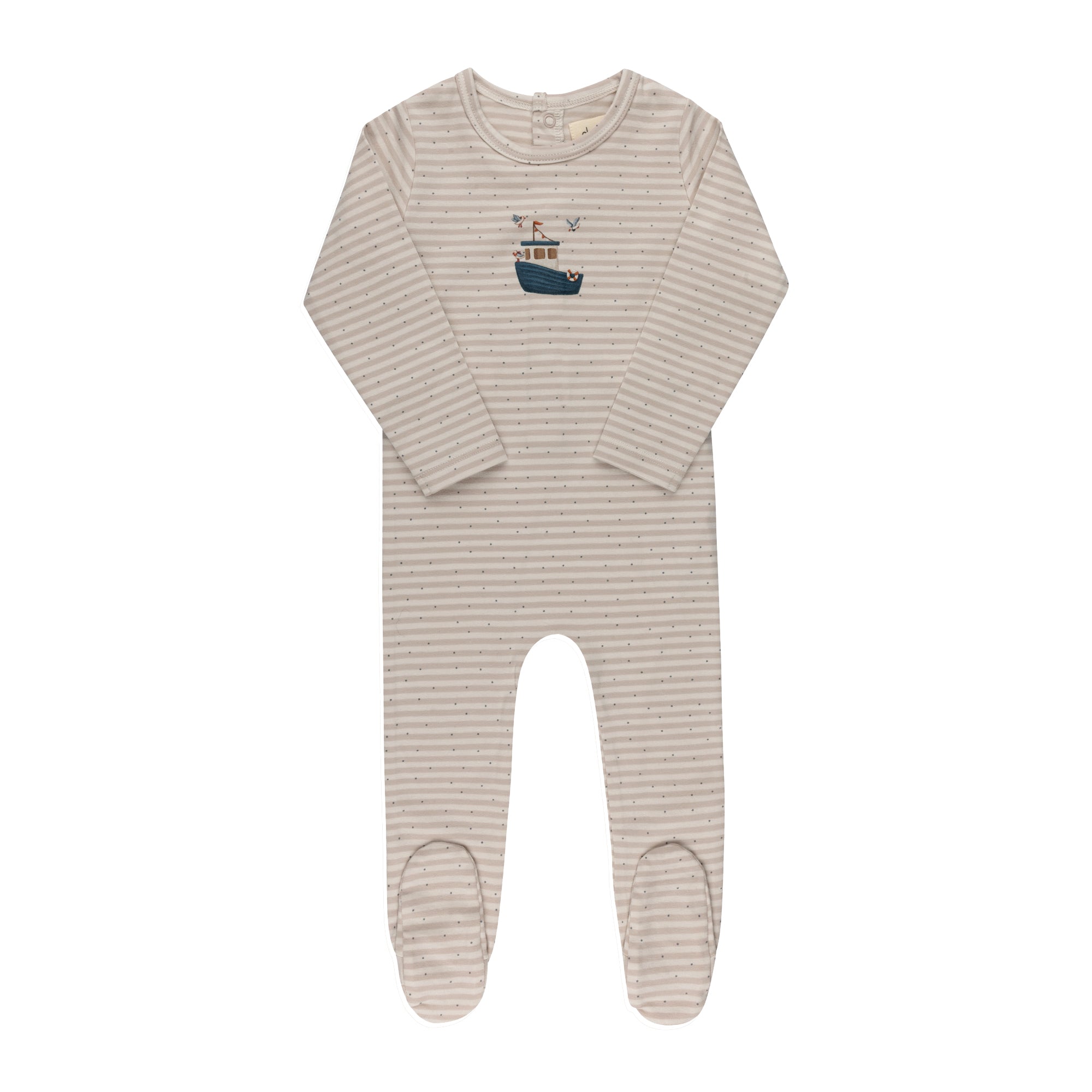 Bee & Dee Dusty Blue Bird Pointelle Footie Set