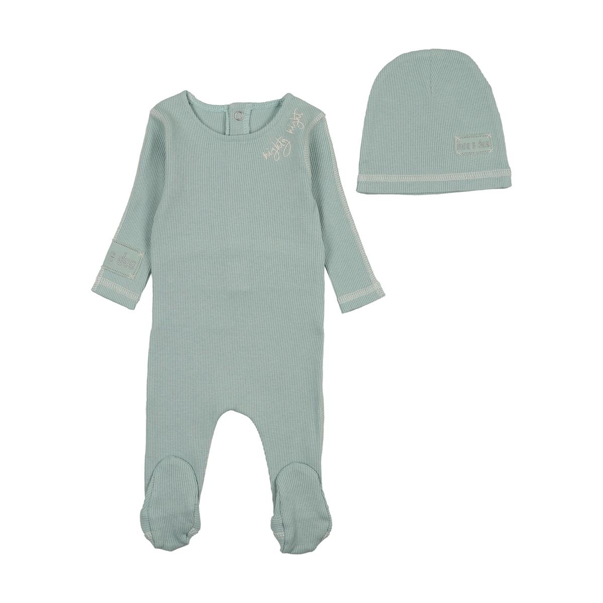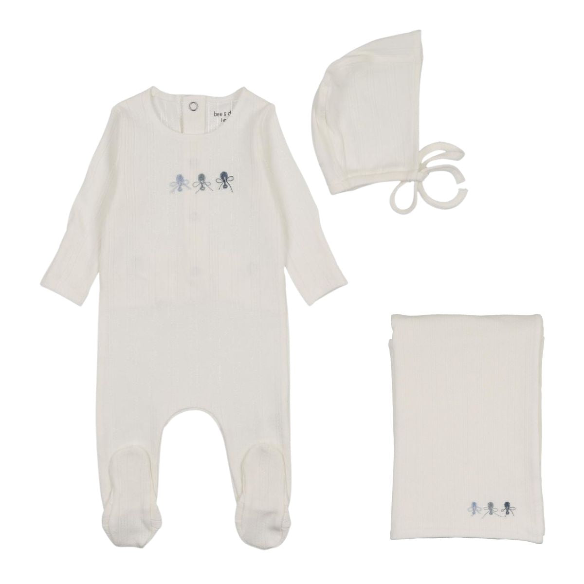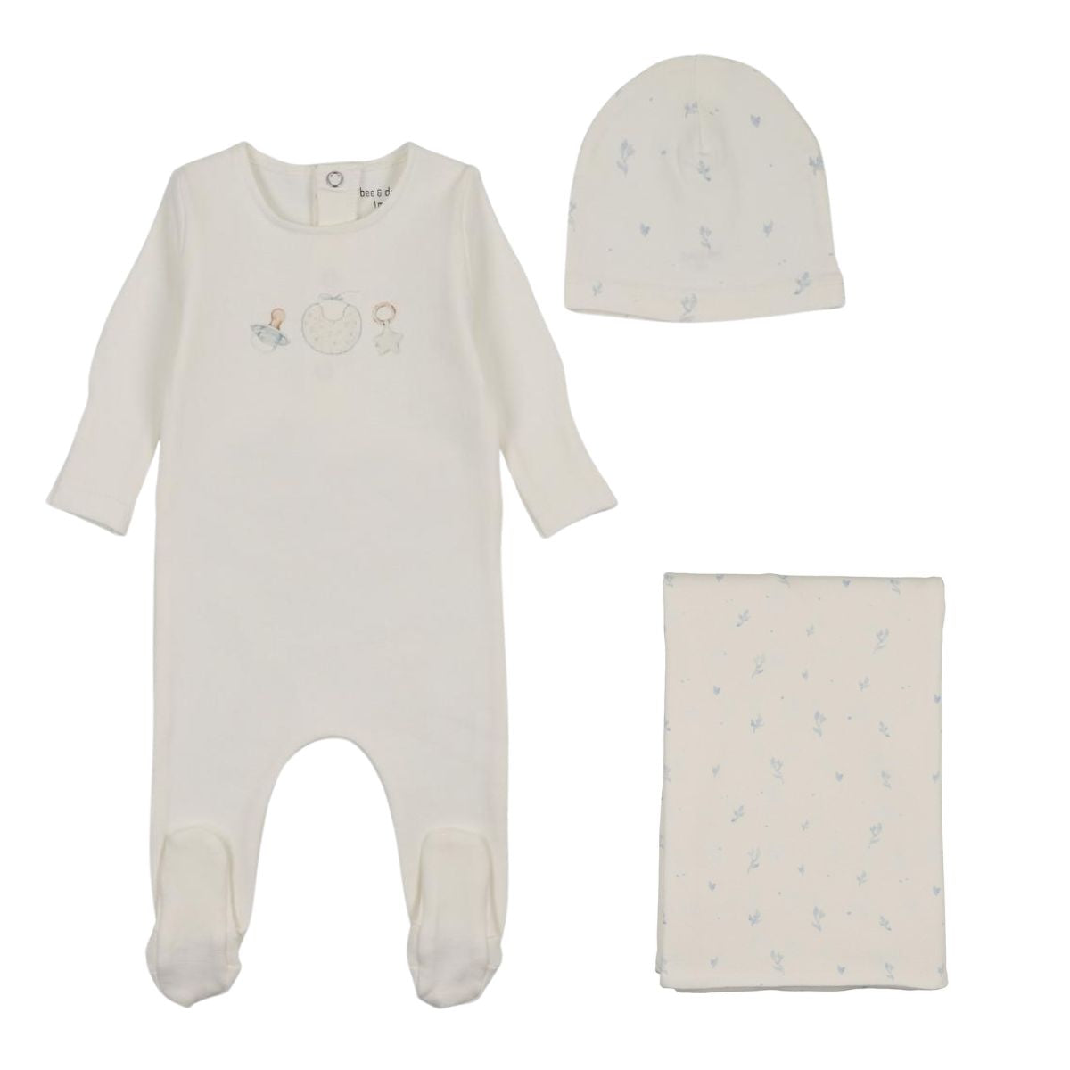 Bee & Dee Chalk White/Blue Rattles Pointelle Footie Set