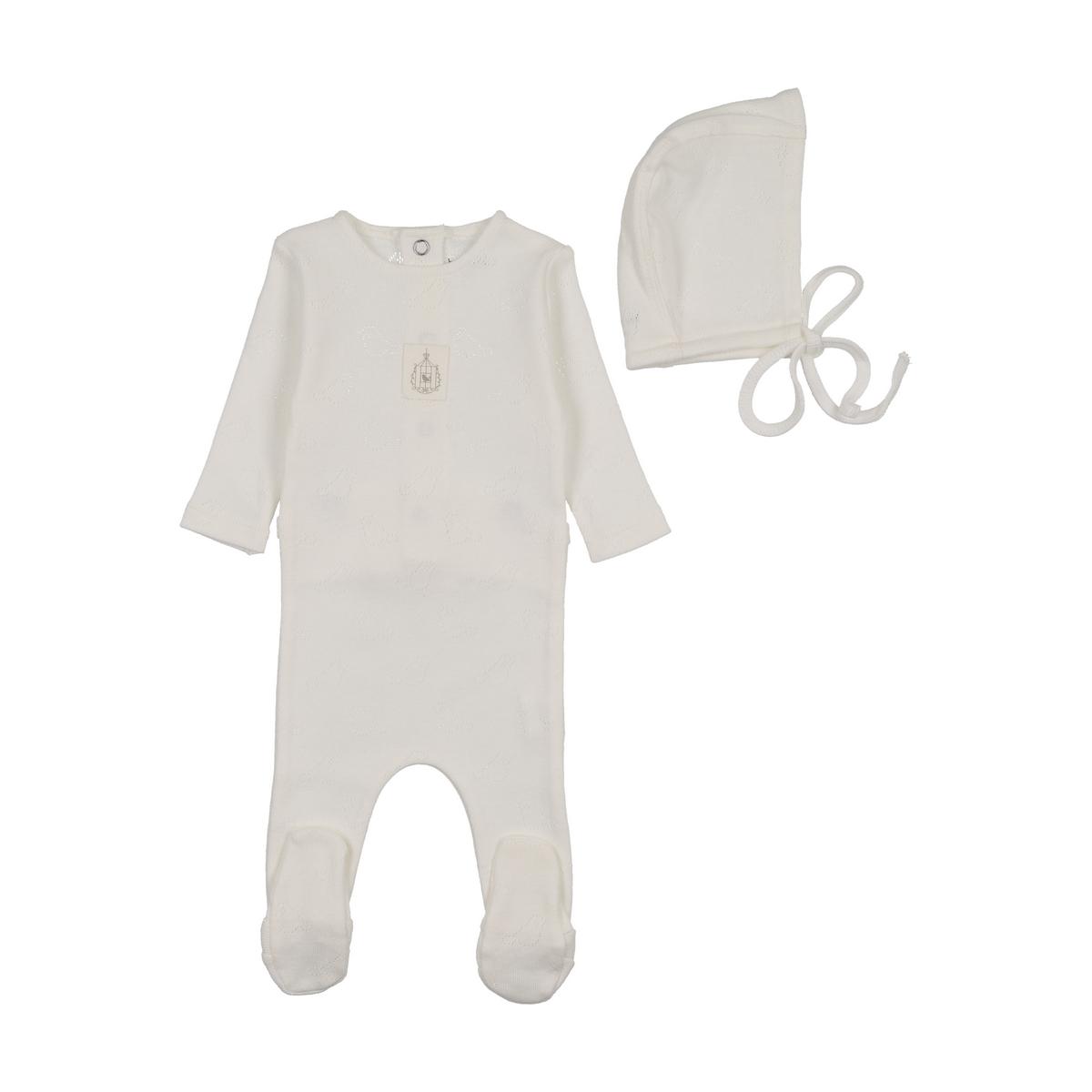 Bee & Dee Chalk White Bird Pointelle Footie Set