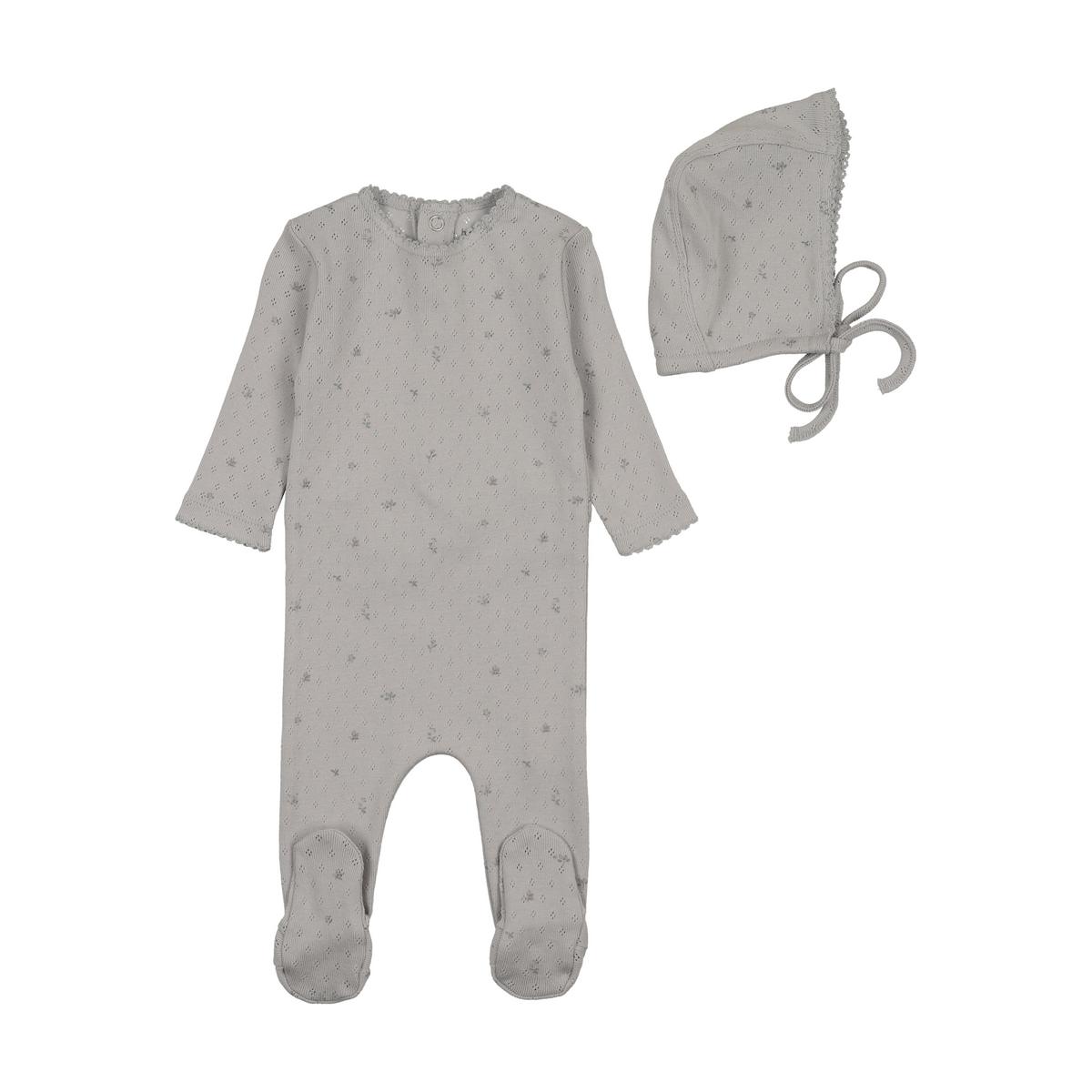 Bee & Dee Dusty Blue Pointelle Flowers Footie Set