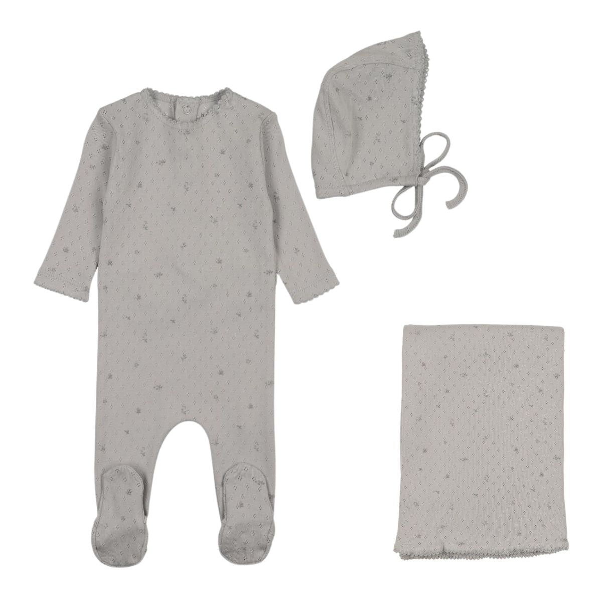 Bee & Dee Dusty Blue Pointelle Flowers Take Me Home Set
