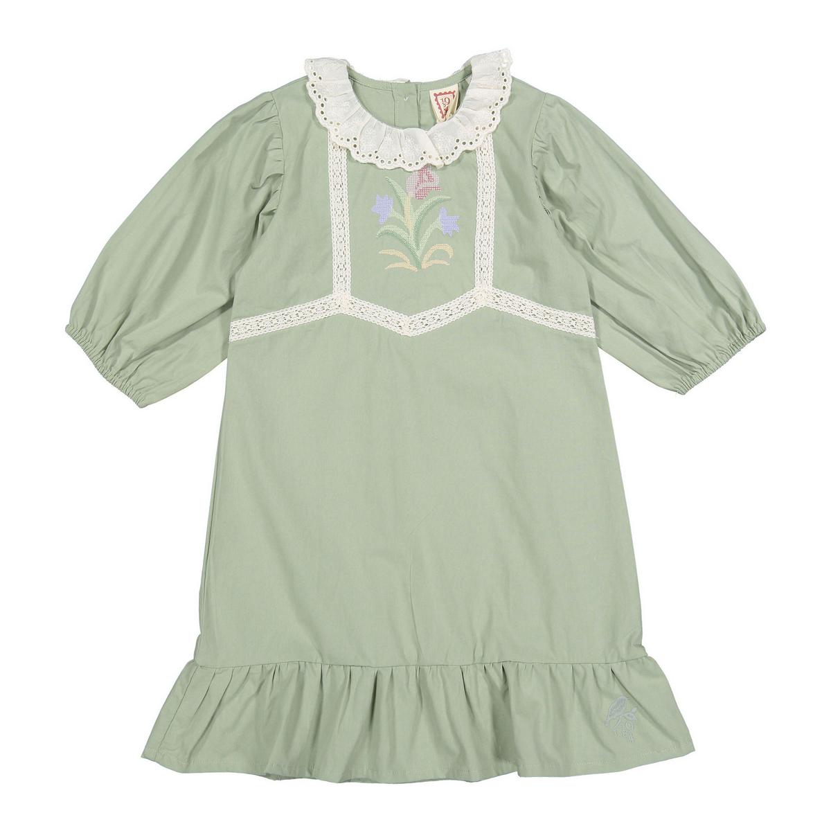 L Sage Rose Embroidered Dress