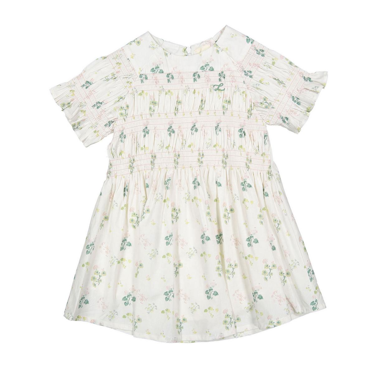 L White Geranium Smocked Short Sleeve Dress