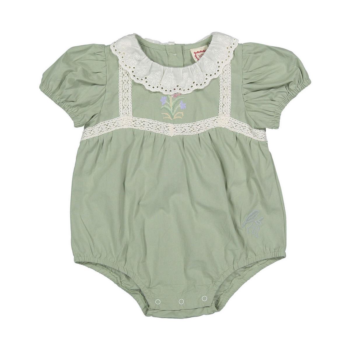 L Sage Rose Embroidered Romper