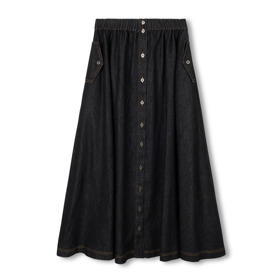 Vibe Black Denim Maxi Pocket Skirt