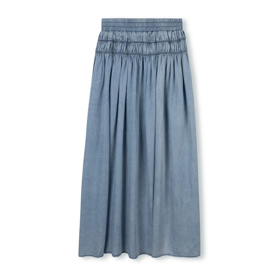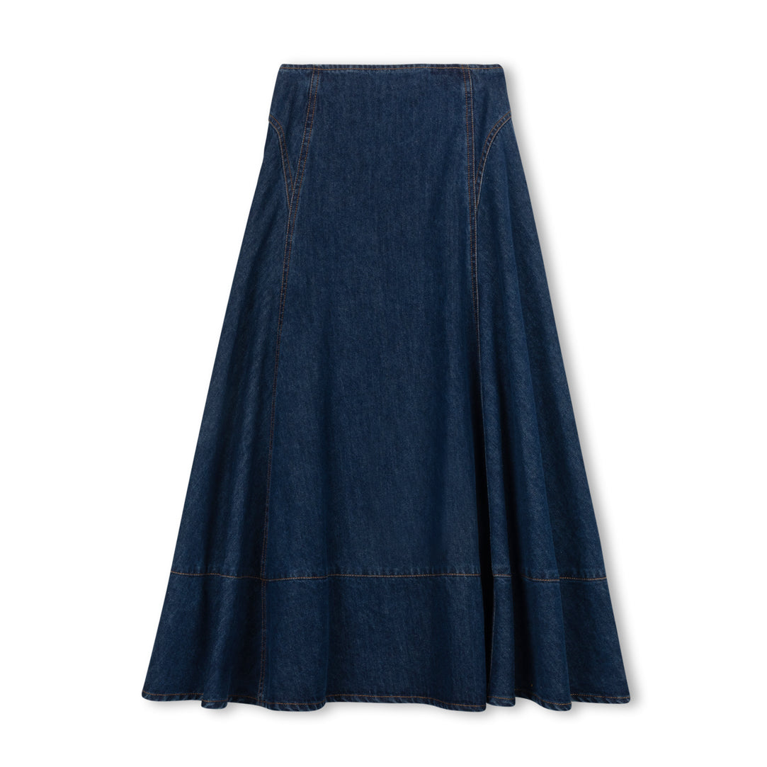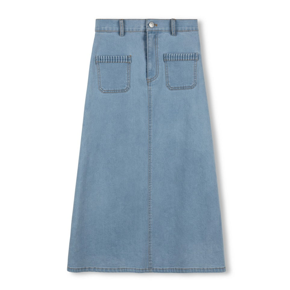 Vibe Blue Denim Stitch Maxi Skirt