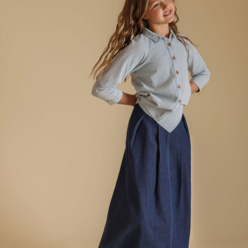 Vibe Denim Midi Small Pleated Skirt