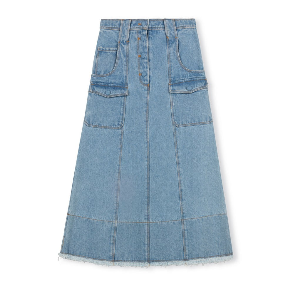 Vibe Light Blue Denim Stitch Pocket Trim Skirt