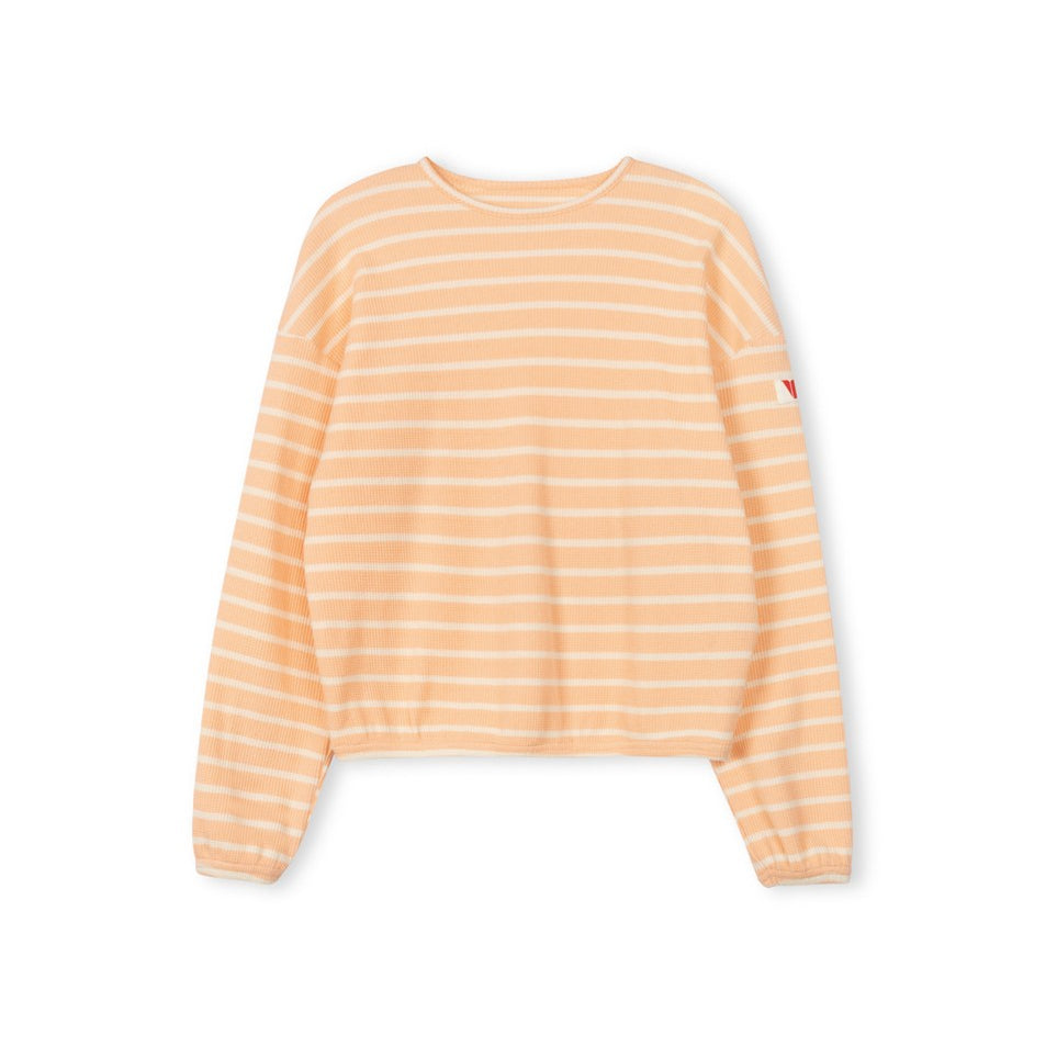 Vibe Peach Striped Waffle Tee