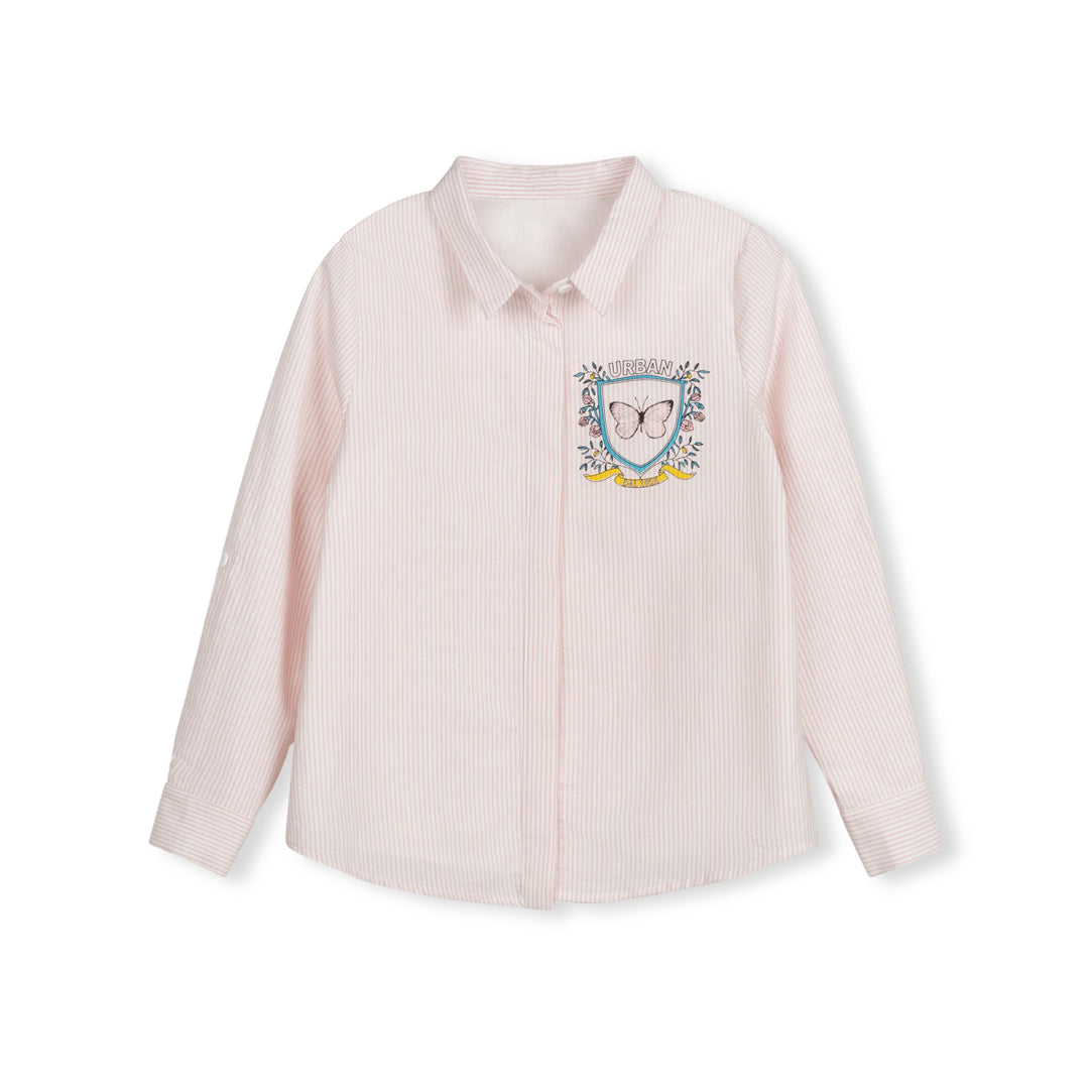 Vibe Pink Pinstriped Butterfly Logo Blouse