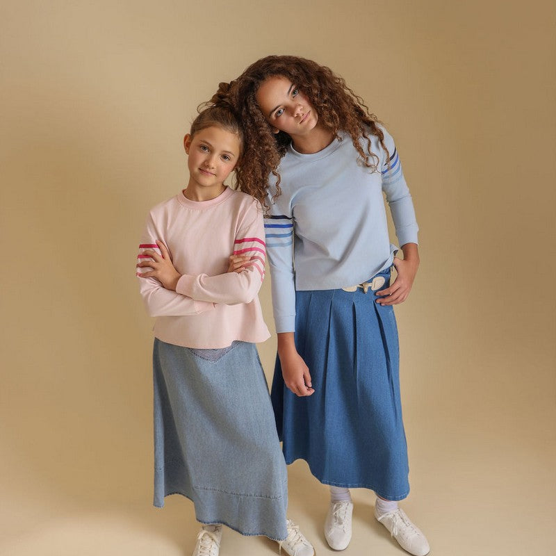 Vibe Mineral Wash Light Blue Panel Midi Skirt