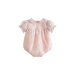 The Vienna Romper in luxurious pink brocade is designed for those moments that matter most. This special occasion piece showcases a beautiful brocade fabric with rich texture and depth, elevating any celebration with understated glamour. The darling collar adds a charming vintage-inspired touch that feels both precious and polished—it's the kind of detail that makes parents pause and smile. Perfect for matching with a big sister's outfit, this romper creates those coordinated sibling moments that make for treasured photographs. C'era Una Volta's commitment to quality shines through in every element, from the sumptuous fabric to the thoughtful design. Whether it's a holiday party, family milestone, or special gathering, this romper ensures your little one looks absolutely radiant.