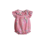This charming romper features a vibrant floral print that brings playful elegance to any occasion. The delicate pink flowers create a cheerful look that's perfect for siblings who love coordinating styles—imagine the adorable photos! Contrast stitching adds a polished touch that elevates the design, catching light with every movement. Crafted by C'era Una Volta, this piece combines quality construction with timeless appeal.