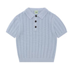 Made from organic cotton this polo shirt is knitted in a graphic pointelle structure. It is designed with short sleeves, a classic shirt collar with decorative details, front closure with corozo buttons, and ribbed hems. The polo shirt has a regular fit. The buttons are made from corozo.
