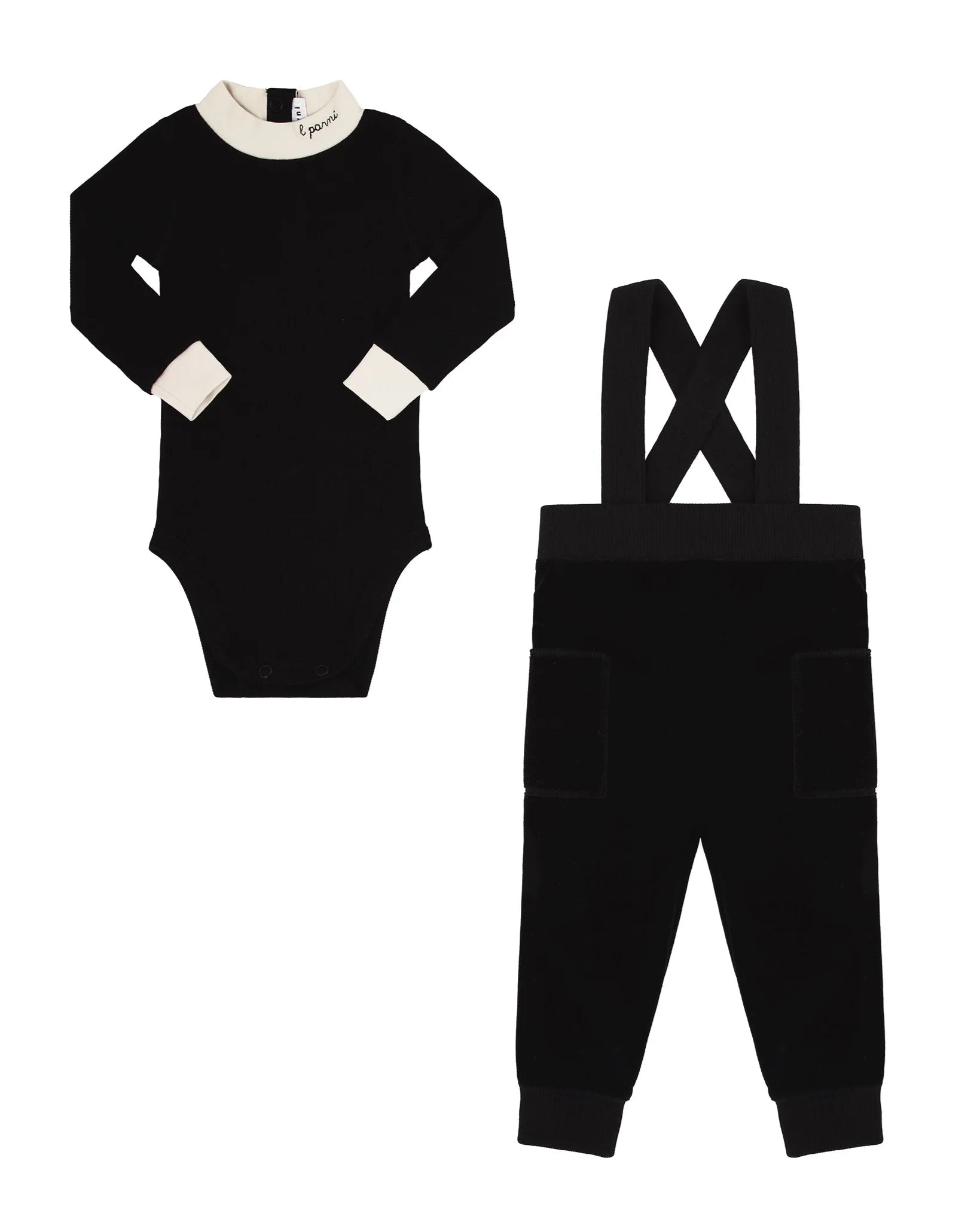Little Parni Black Velour Overall Set