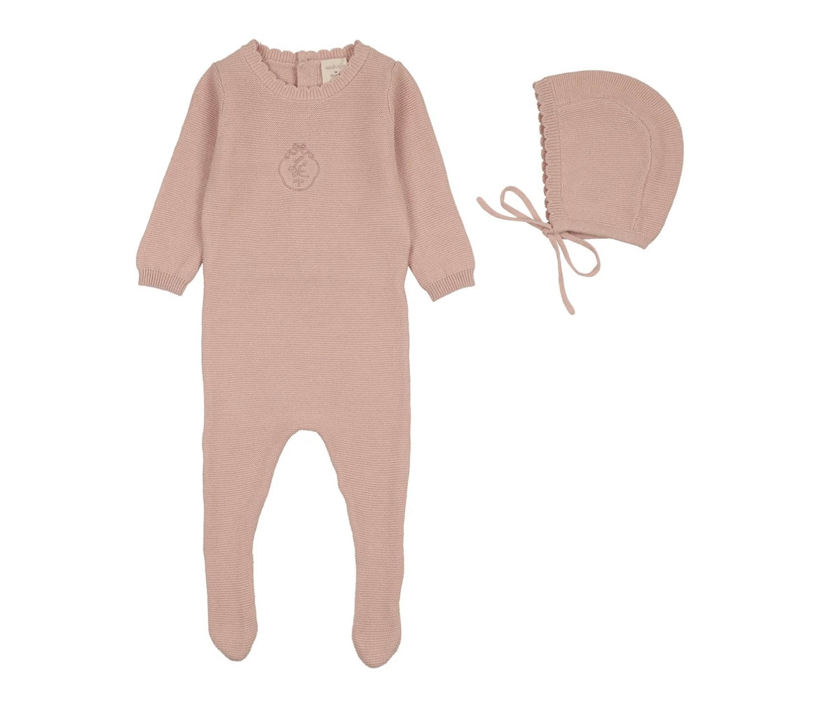 Analogie Bud Pink Crest Knit Footie Set