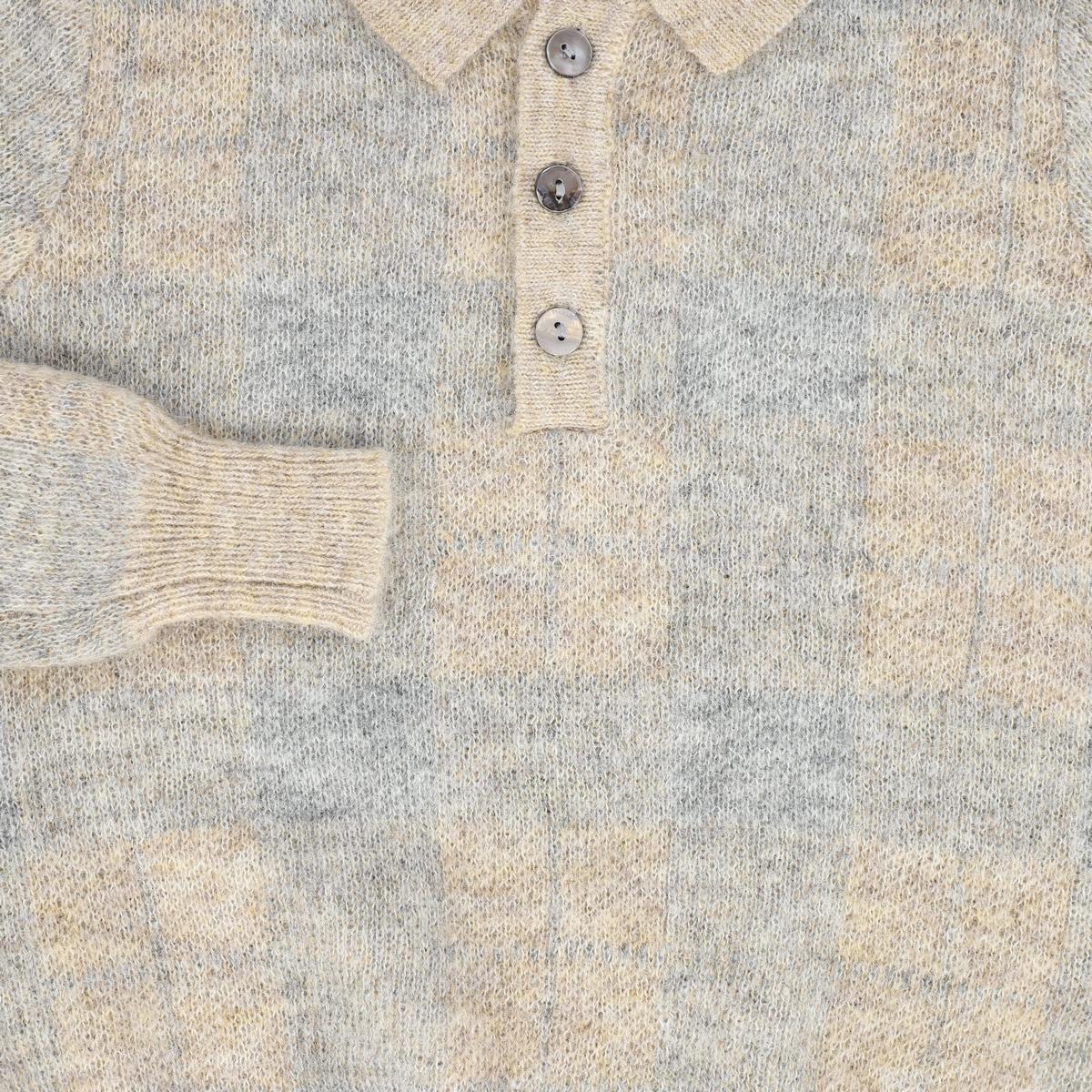 Bamboo Light Grey Plaid Knit Collar Sweater