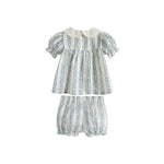 Meet the set that brings the whole family together in style. This two-piece ensemble features a stunning blue stripe floral print that's both timeless and versatile, paired with an elegant crochet collar that elevates every wear.