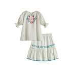 The C'era Una Volta Cream Amelia Set brings refined elegance to family coordination. This sophisticated two-piece features gorgeous colorful embroidery that elevates the classic cream base with artisanal detail and depth. Perfect for the tween who's ready to express her more mature style, the set balances playful embellishment with understated grace. Coordinate with the family while letting her stand out with this beautifully crafted piece.