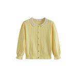 Elevate any skirt or dress with this stunning C'era Una Volta cardigan, featuring an exquisite crocheted collar that adds instant sophistication. Crafted from lightweight pointelle knit, it drapes beautifully without bulk—ideal for layering through spring. The vibrant yellow hue brings warmth and personality to your wardrobe, whether you're pairing it with the July skirt or creating fresh combinations with your favorite pieces. A versatile essential that transitions effortlessly from season to season.