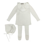 Carmina Ivory Linen Collar Knit Three Piece Set