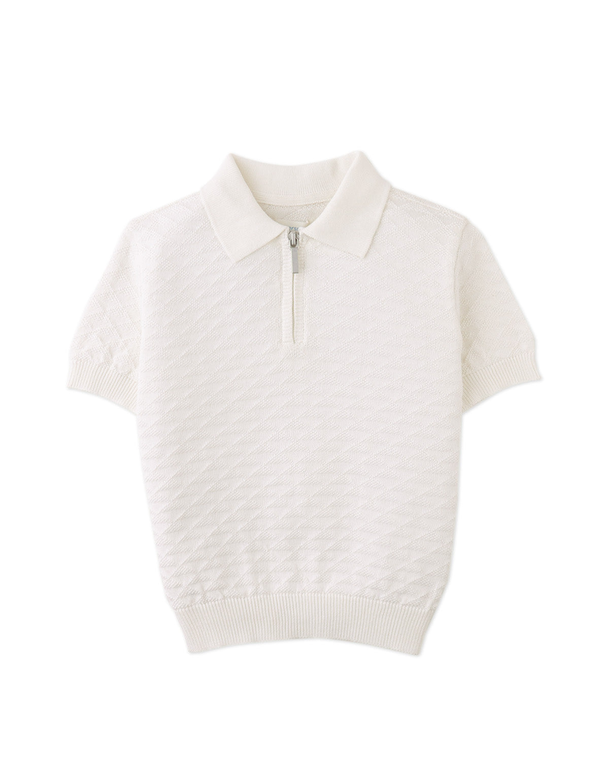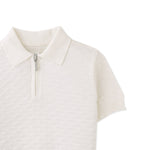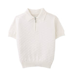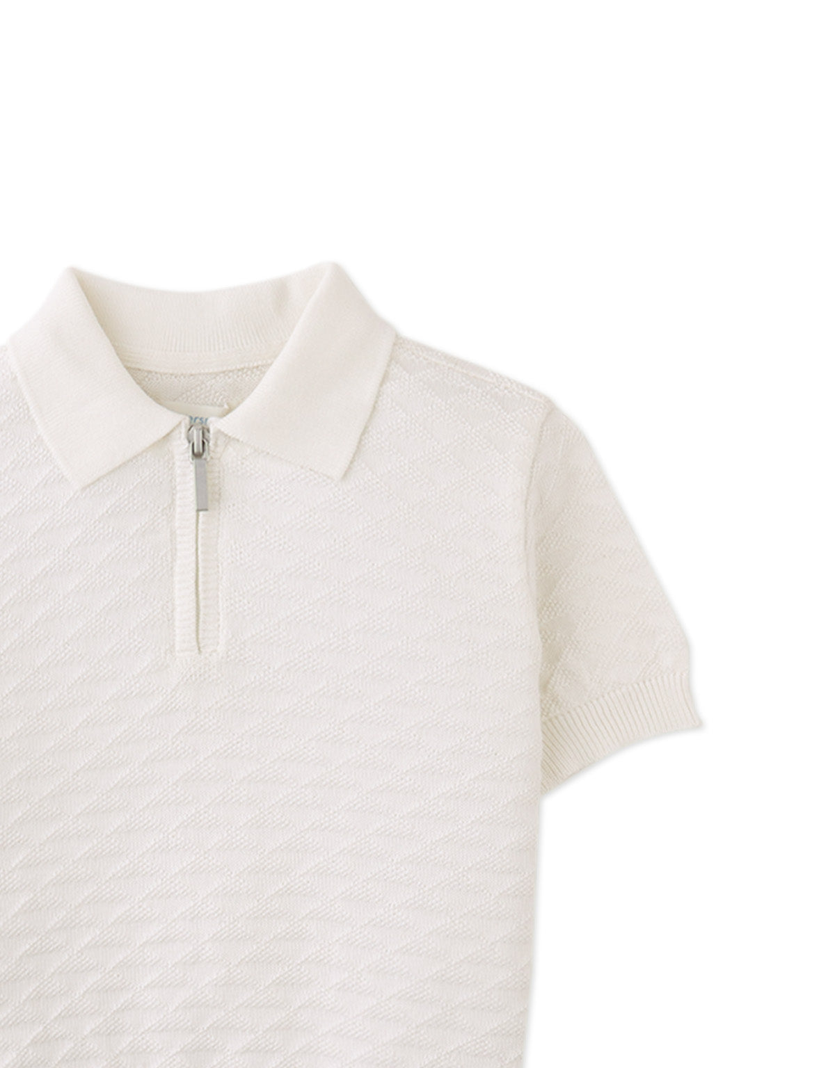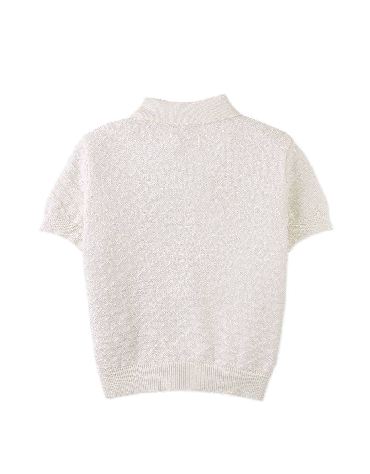 This charming polo combines effortless elegance with playful style. The lightweight knit fabric drapes beautifully while keeping him comfortable all day long. The delicate triangle jacquard design adds a sophisticated touch that sets it apart from basic basics—it's the kind of thoughtful detail that makes an outfit feel intentional.