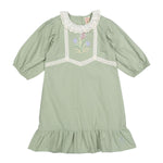 L Sage Rose Embroidered 3/4 Sleeve Dress