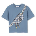 This slate blue tee features an adorable fanny pack graphic that's pure fun—complete with all those charming little details kids love. The playful print pops beautifully against the soft blue base, making it a go-to piece for any wardrobe. Perfect for everyday wear with serious style points.