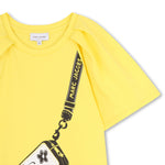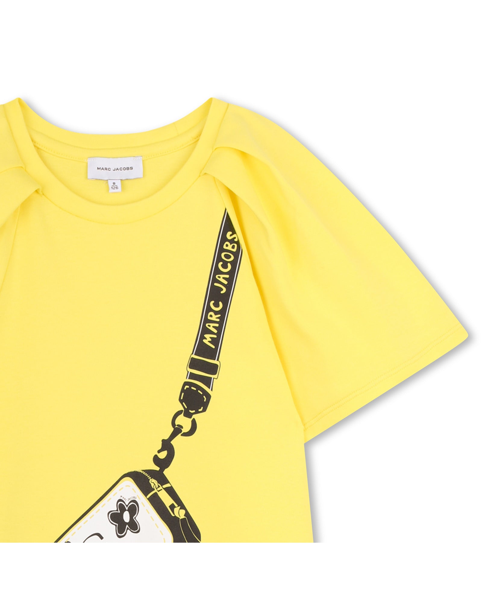 Brighten her wardrobe with this cheerful Marc Jacobs Snapshot dress in sunny yellow! Featuring playful balloon sleeves that add a touch of whimsy and an adorable bag print that sparks joy, this piece is pure delight.