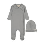 Mema Dove Blue / Winter White Trimmed Collar Footie + Beanie