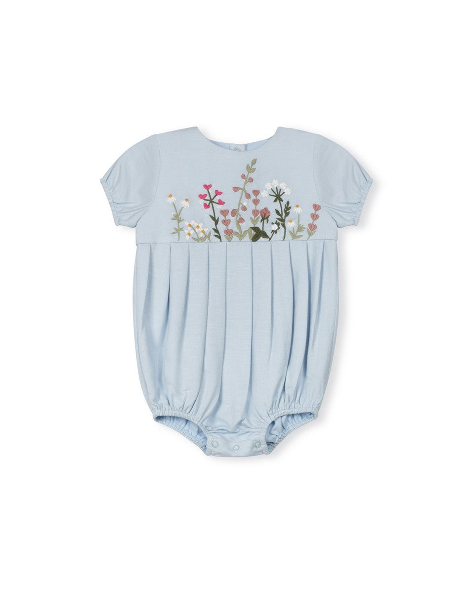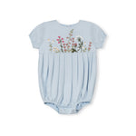 One Child Light Blue Stacy High Waisted Floral Embroidery Romper